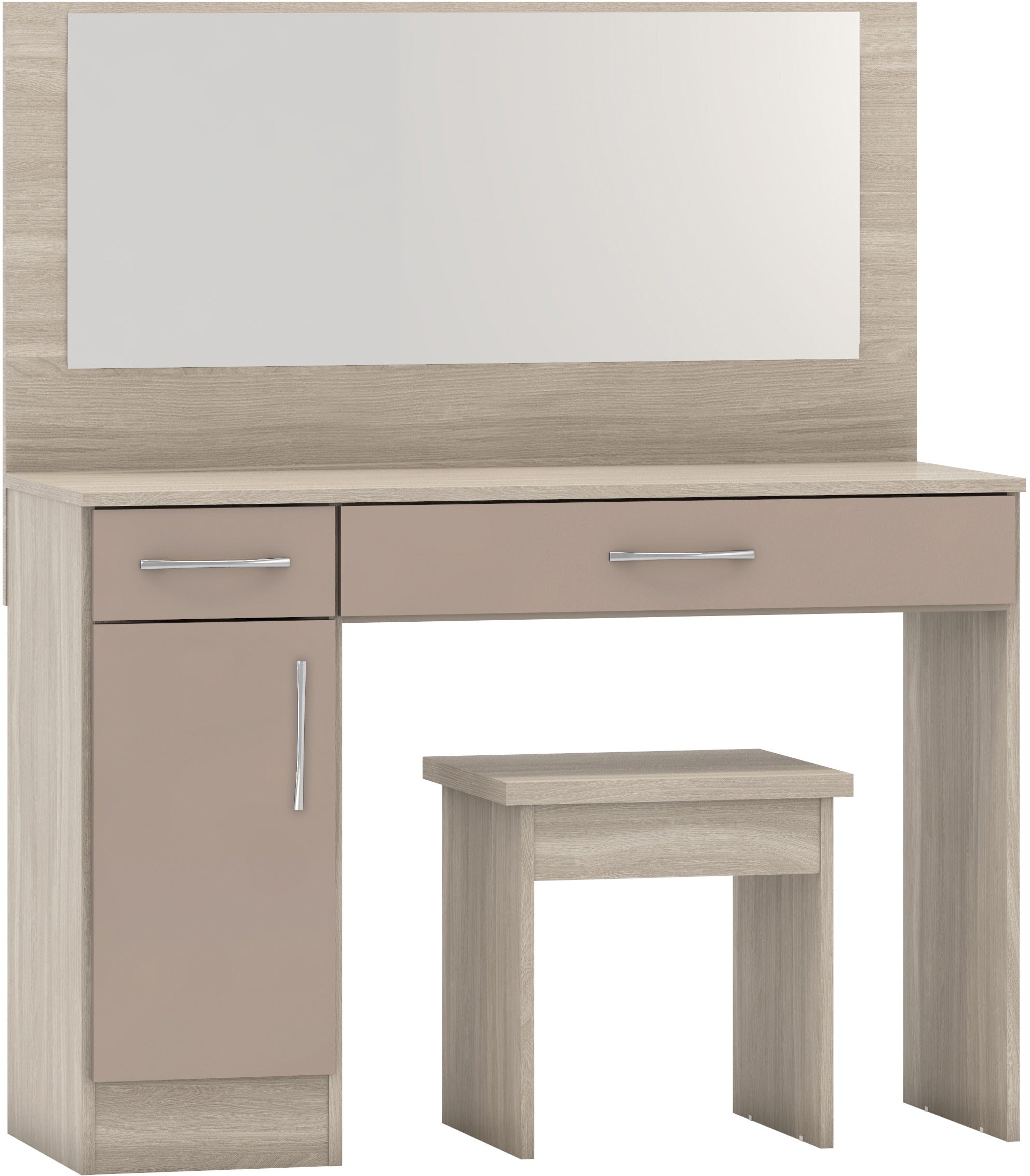 Nevada 4 Drawer Dressing Table Set Oyster Gloss/Light Oak Effect Veneer